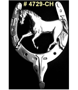 CODE NO. : 4729-CH METAL : Solid Brass Chrome Plated ITEM : Horseshoe with Horse Head & Nails |